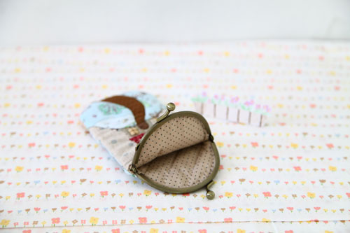 ในชุดมีวิธีทำพร้อมวัสดุประกอบด้วย ผ้าสำหรับเย็บครบชุด, ใยบุอย่างดี, ด้ายควิลท์, ปากกระเป๋าโลหะ, ด้ายปัก